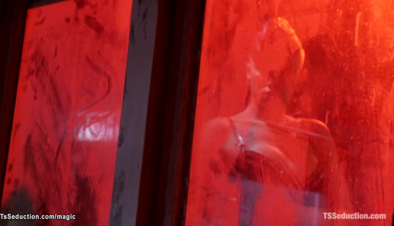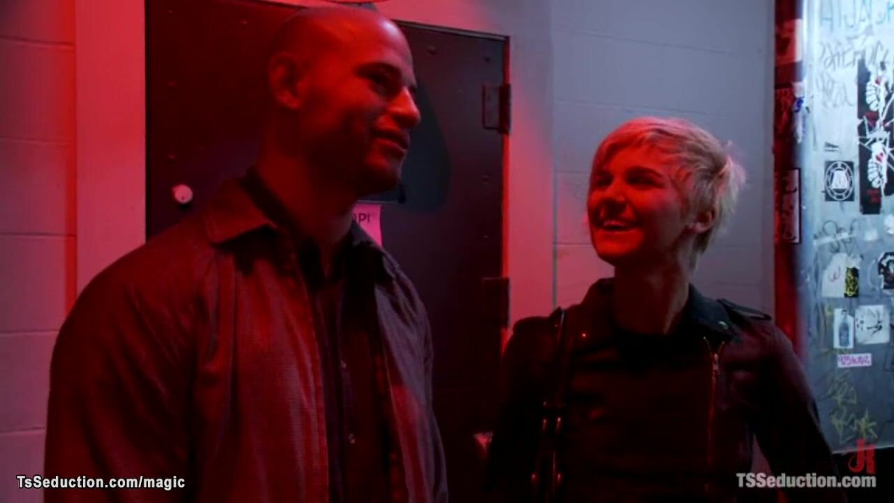 Horny couple Chloe Camilla and Patrick Rouge visit Red Light District where tall big boobs blonde shemale dominatrix Danni Daniels fuck them with big cock
