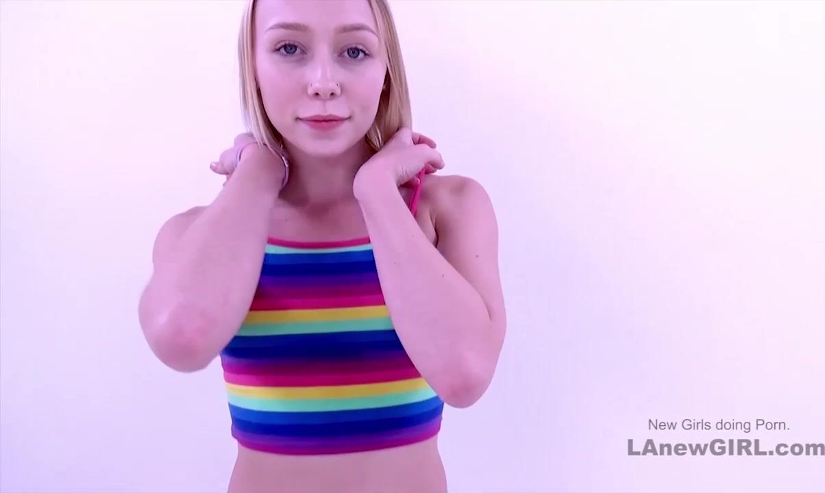 This new blonde with braces has such a strong sexual appetite that our Producer is barely able to keep up but in this video she cums multiple times on his cock
