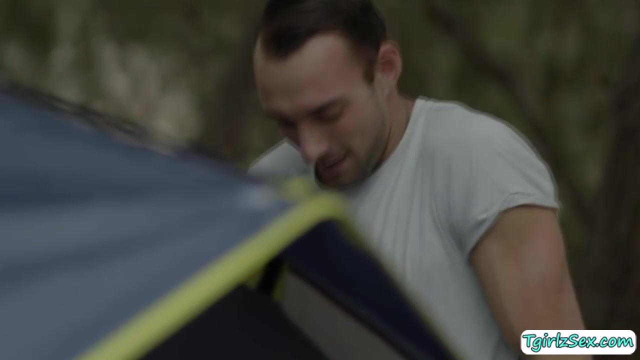 Small tits shemale Korra Del Rio and her stepsister Liv Revamped go on outdoor camping. The brunette ts went out and left her alone with some dude and they orally service before she joins them and have hardcore barebacked anal threesome with lots of blowjob and kissing scene.