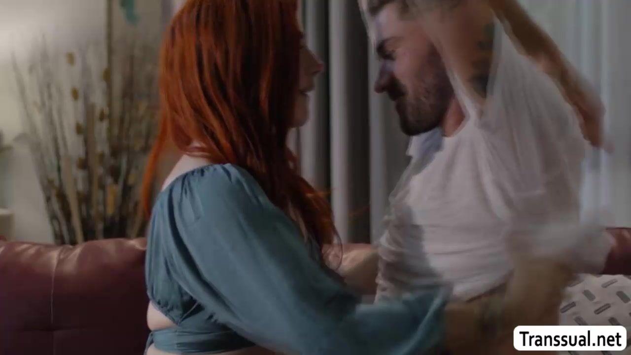 Slut TS brings her new guy into her place while her husband is out.They start kissing each other on the couch and she then throats his hard big cock passionately.In return,the dude bareback fucks her wet ass so deep and hard.