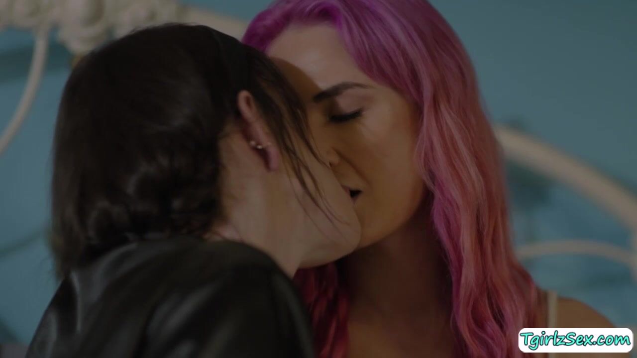 Tall and small tits shemale Lena Moon makes out with busty milf Siri Dahl warmly kissing and tit sucking before she bows down to deepthroat blowjob her big tranny cock. The big boobs babe stretches pussy to take her gigantic dick for a hardcore pussy ride doggystyle.