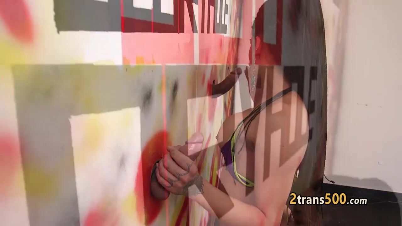Tattooed sexy latina tgirl in bikini found two hard cocks and sucked them deep then wanked her tgirl shaft solo until cumshot