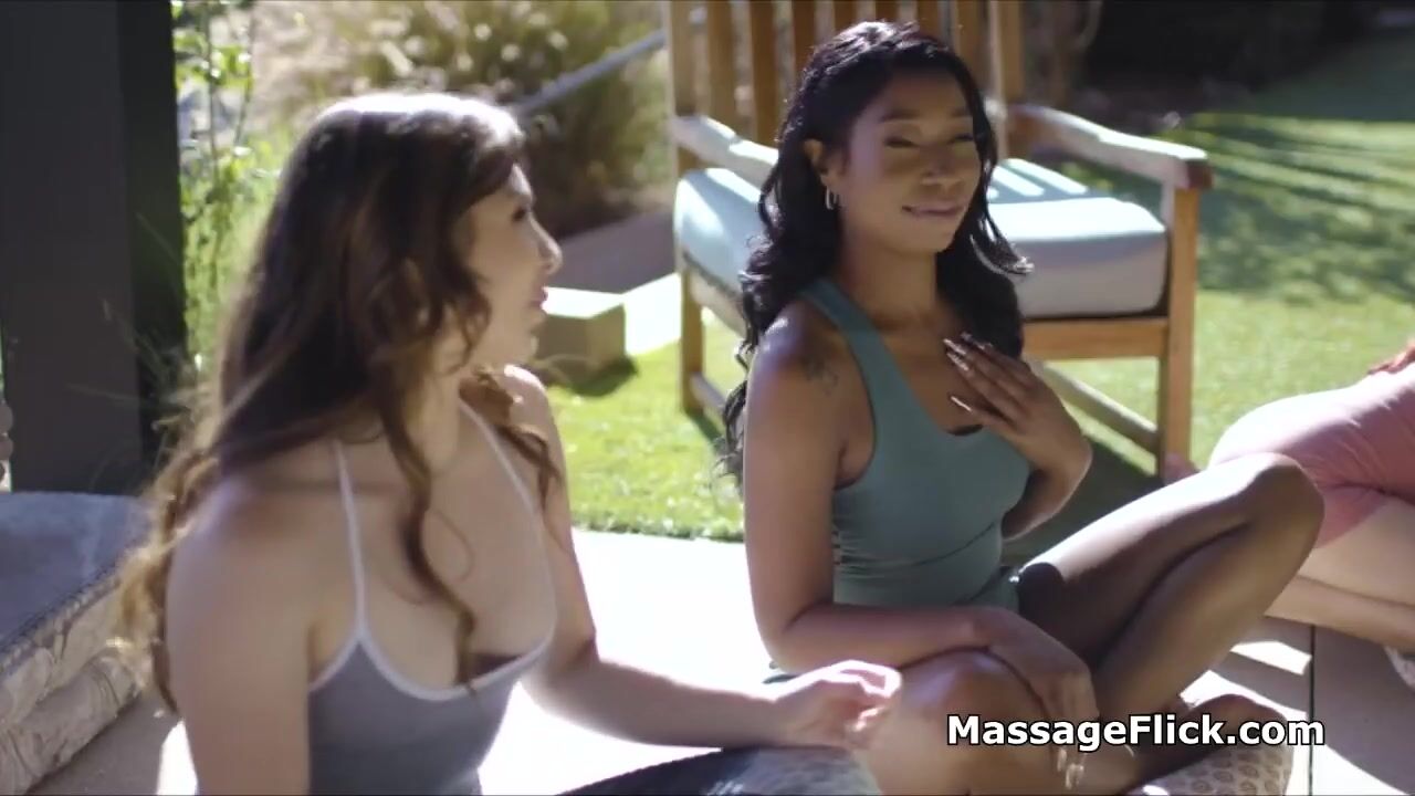 This meditation class has gone wild. The sexy ebony instructor can't wait to have some fun with one of the ladies.. in front of all the others!