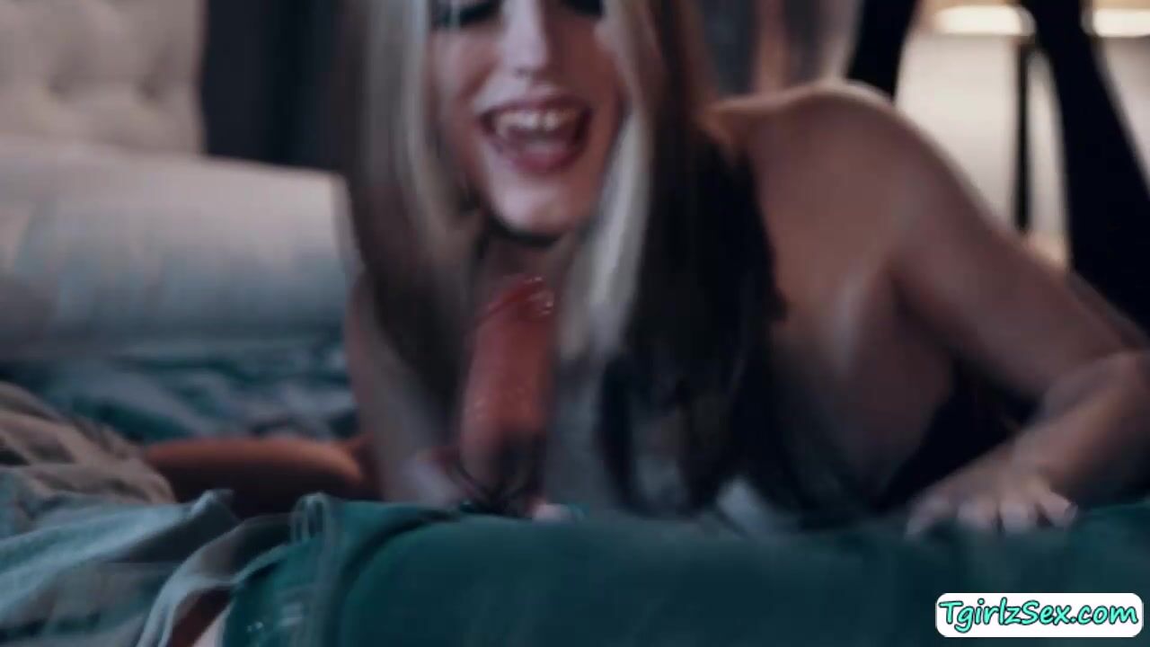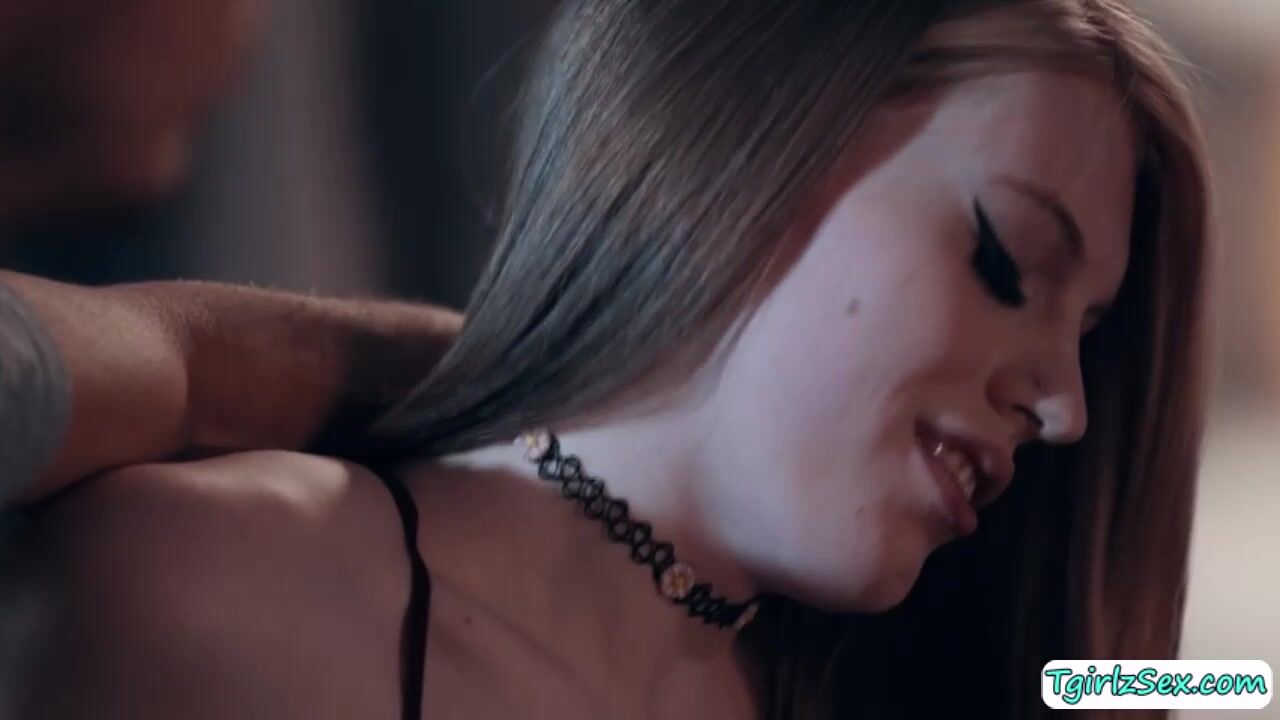 Small tits brunette transexual Izzy Wilde makes out with hunk straight guy Tony Sting in bed caressing his bigcock while kissing then bows down for a messy blowjob. The petite tbabe strokes her tranny cock while he anal barebacks her gaping big asshole.