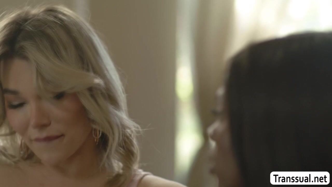 Hot Ebony makes coffee for her especial TS girlfriend.After that,they go into their room and start kissing each other on bed.Next is,she lets her shemale girlfriend lick her pussy first to makes it wet before she fucks it so deep and hard.