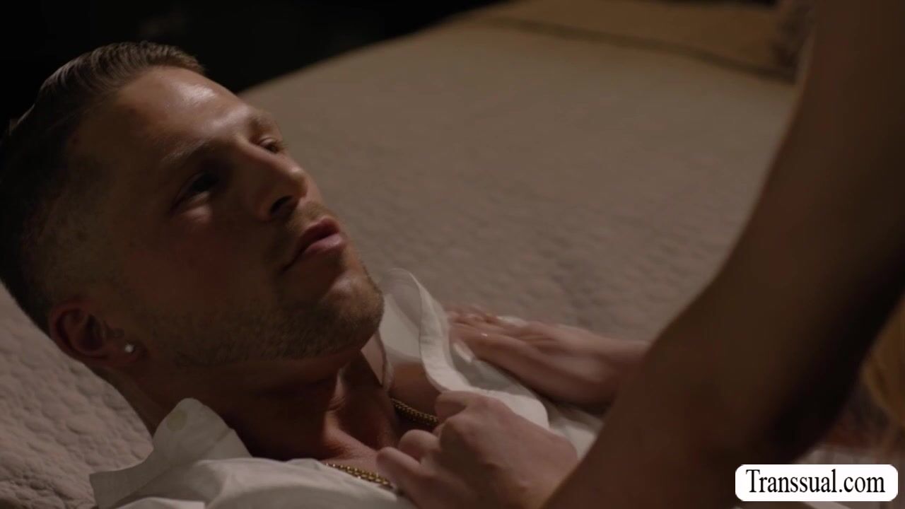 Hot blonde TS Gracie Jane wears a seductive lingerie and start kissing her new boyfriend on the bed.After that,she throats his hard big cock passionately and in return,the guy licks and fingers her ass before he fucks it so deep and hard.