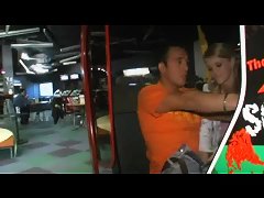 Hot slut has fun. Thin bitch with small tits suck a stranger's cock and rides it hard.