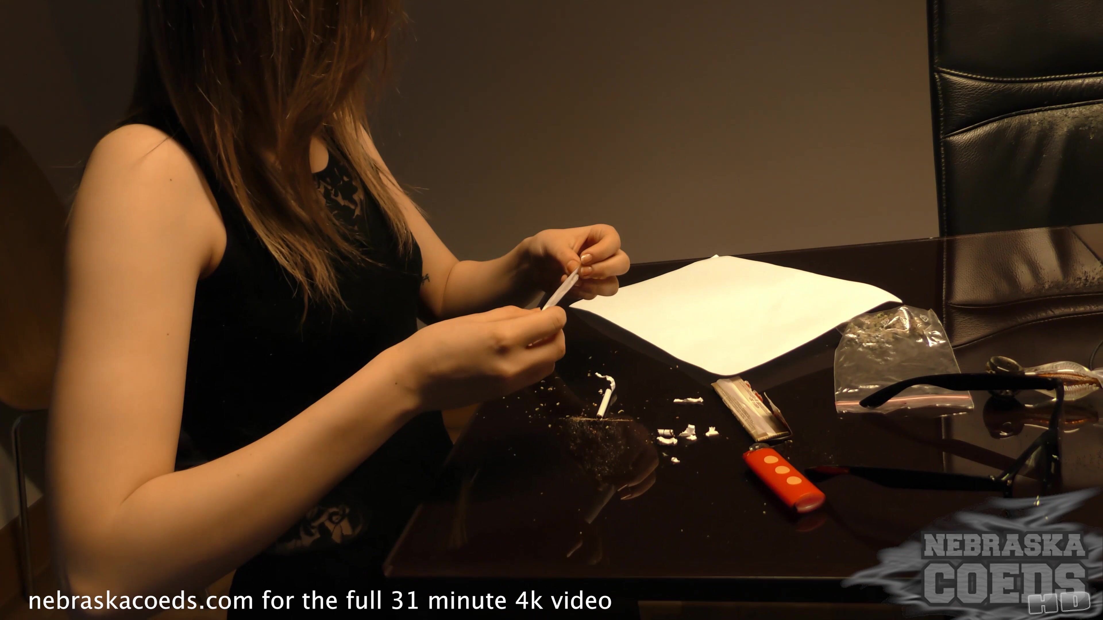 19yo models smoking for the first time and using a strap-on dildo