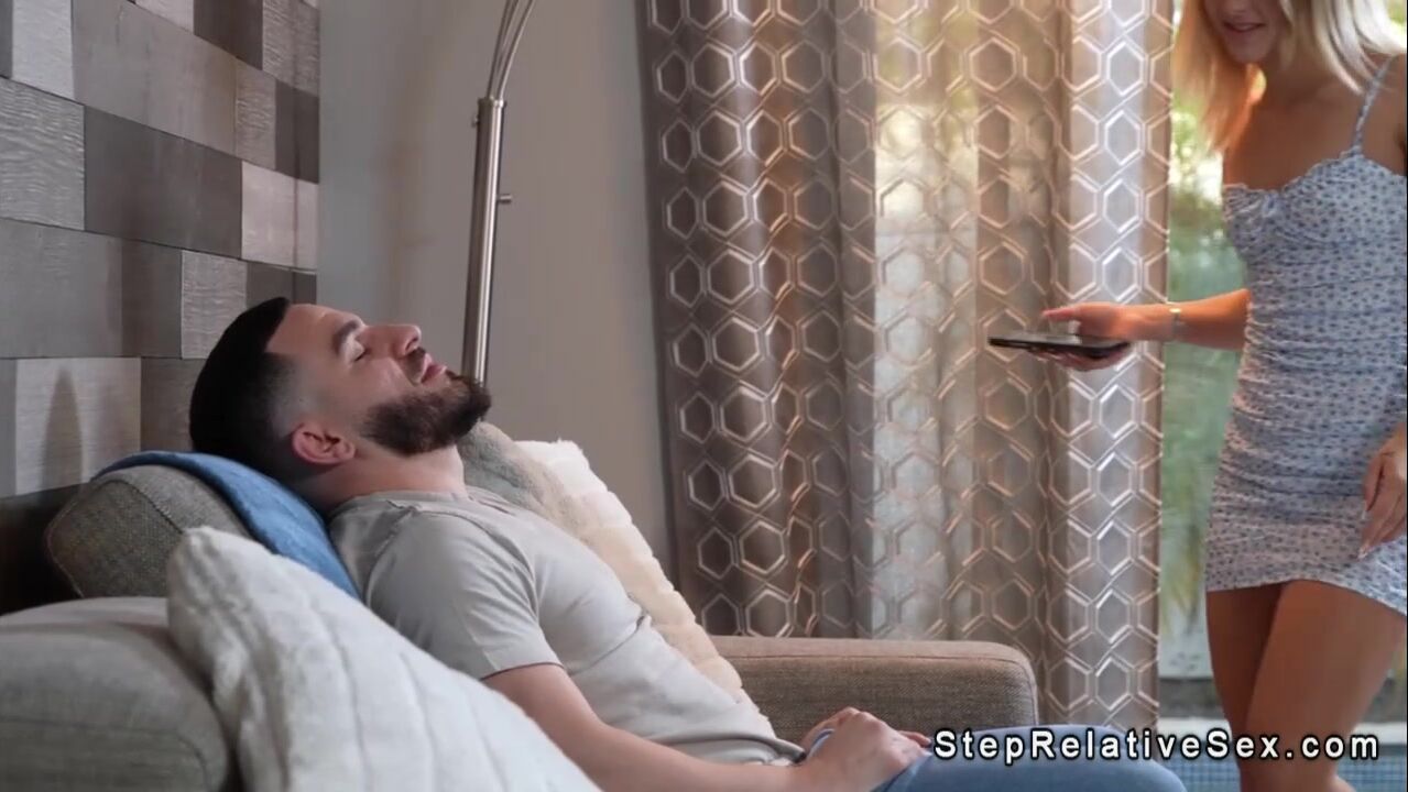 When his hot blonde teen stepsister Emma Bugg asks Peter Green for afavour he shows her his big boner and soon after face fucks her and with big cock in various positions