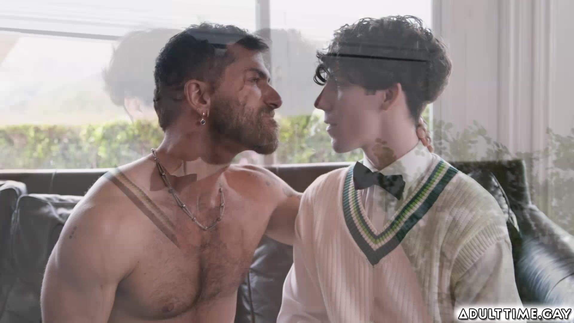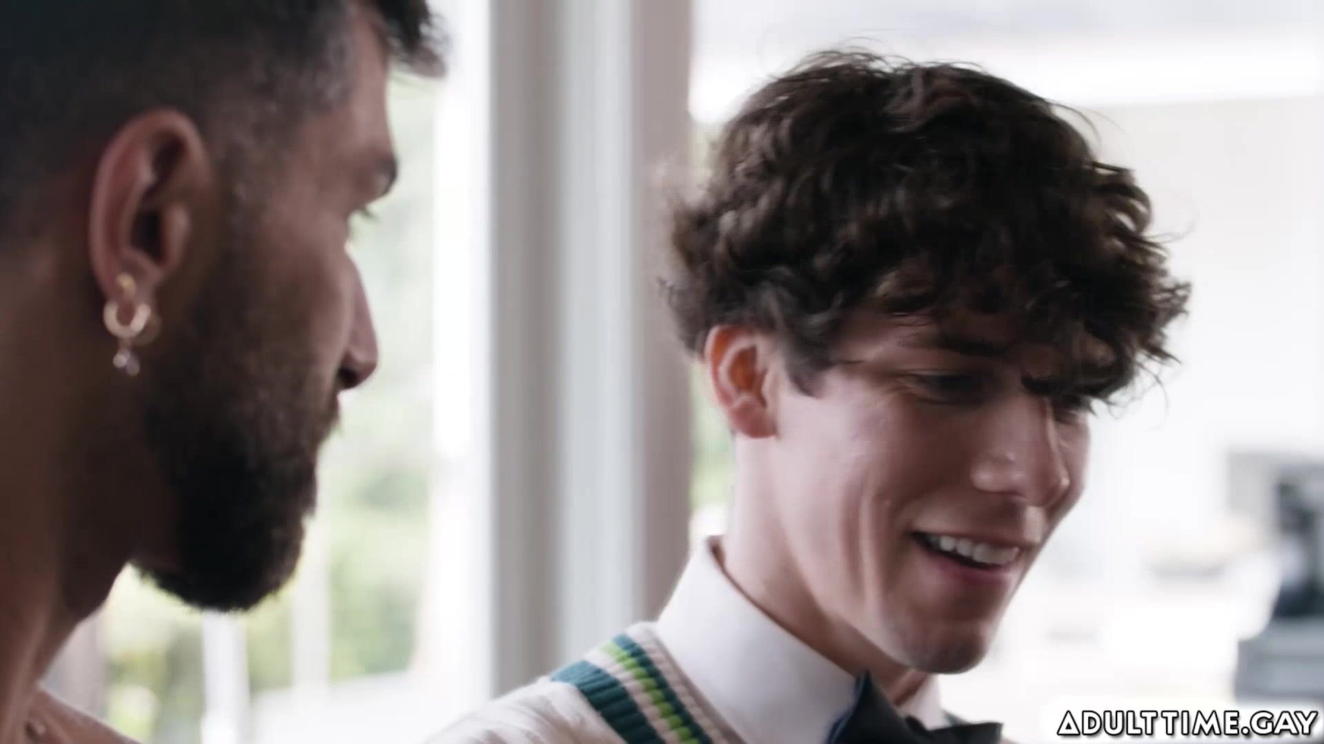 Cristiano is going door-to-door, but when he knocks on his neighbor Adam Ramzi's door, he's taken aback when he's greeted by a sweaty and shirtless Adam, They go inside but Cristiano can't help but look between Adam's legs as his cock is showing. Adam teach him to fuck because he is still a virgin.