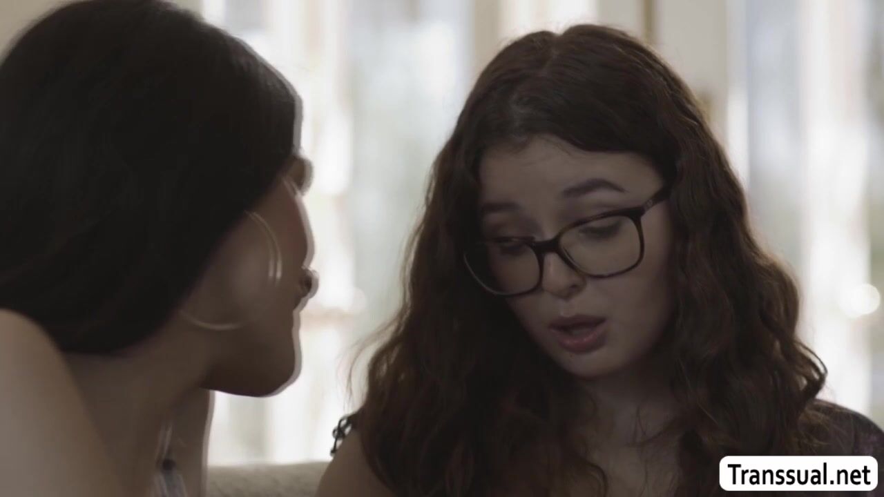 Teen Geek meets the TS girlfriend of her bestfriend and they start kissing each other on the couch.After that,she lets TS Zariah Aura lick her fat pussy first and in return,she throats her hard shecock and rides it afer.