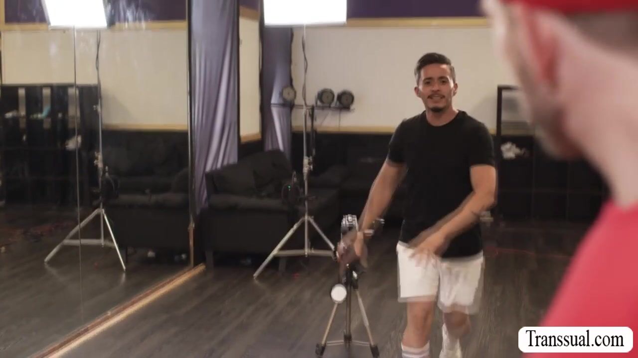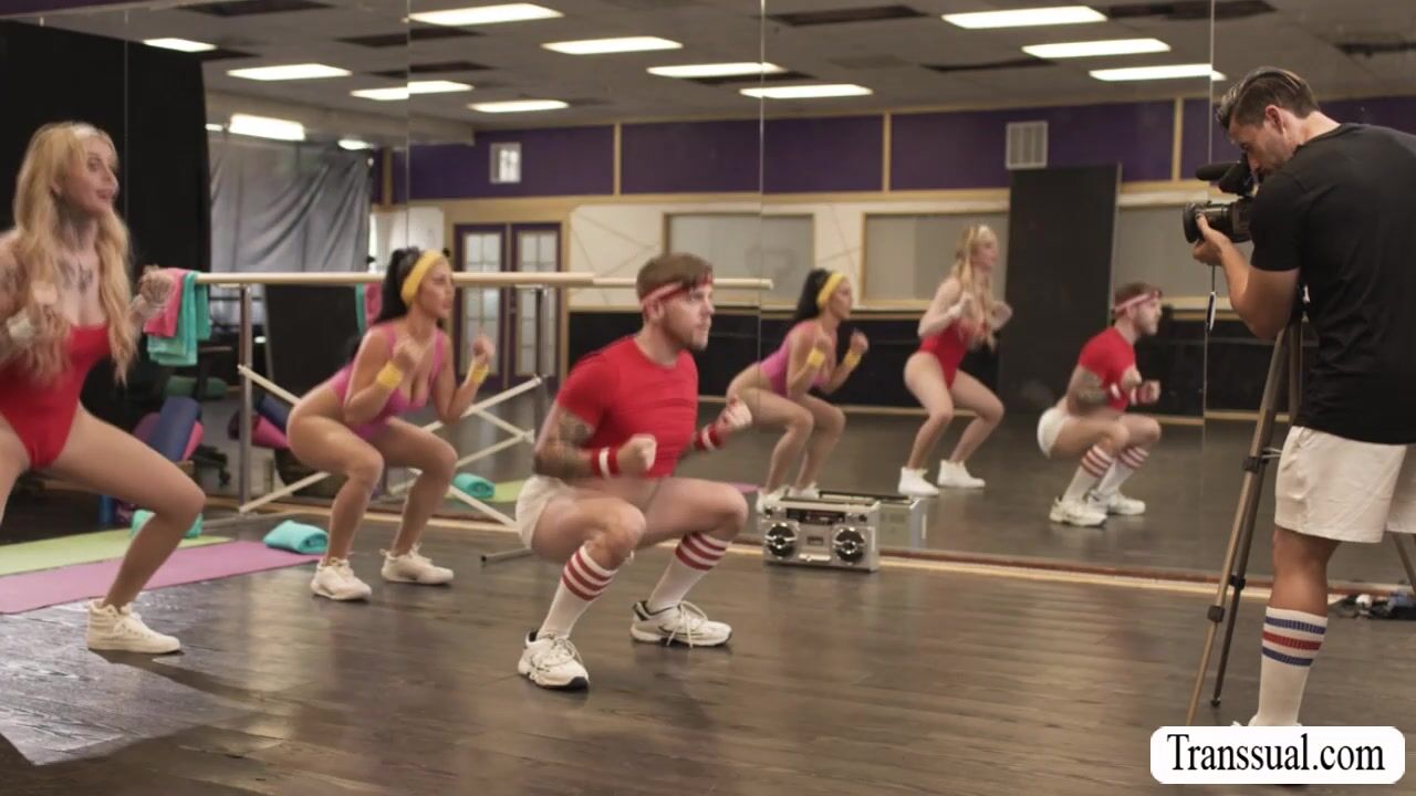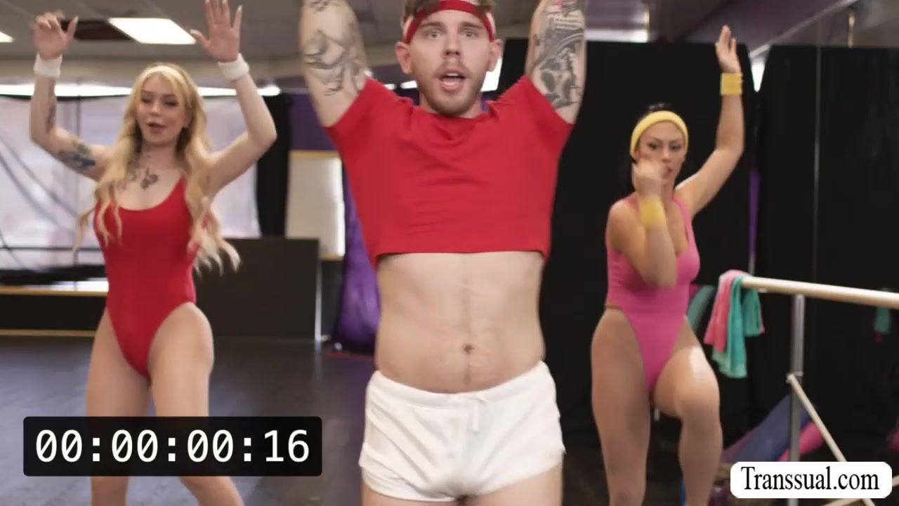 Slutty TS fucks gym buddy and rides coachs cock