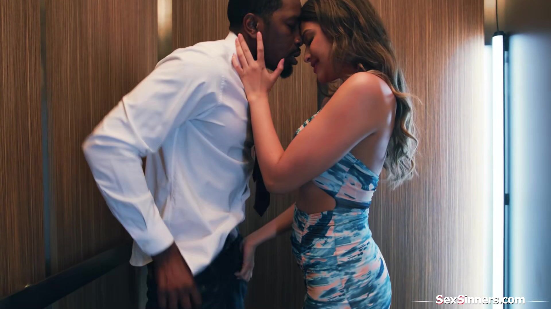 Gizelle Blanco meets both secret dates in the elevator.When one leaves shes pussy licked then the other comes back and shes facefucked by a bbc until shes caught.The brunette confesses she want them both and they take turns fucking the cheating slut