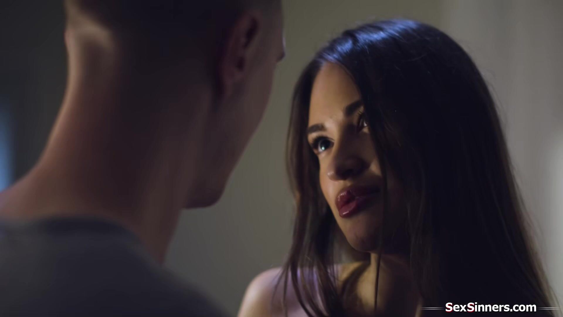 Teen Gizelle Blanco catches her gfs stepbrother peeking.She leaves the bedroom and finds his dick hard and takes his big cock in her mouth in the hallway.She throats and lets him lick her pussy.With her gfs in the next room the sexy beauty rides dick