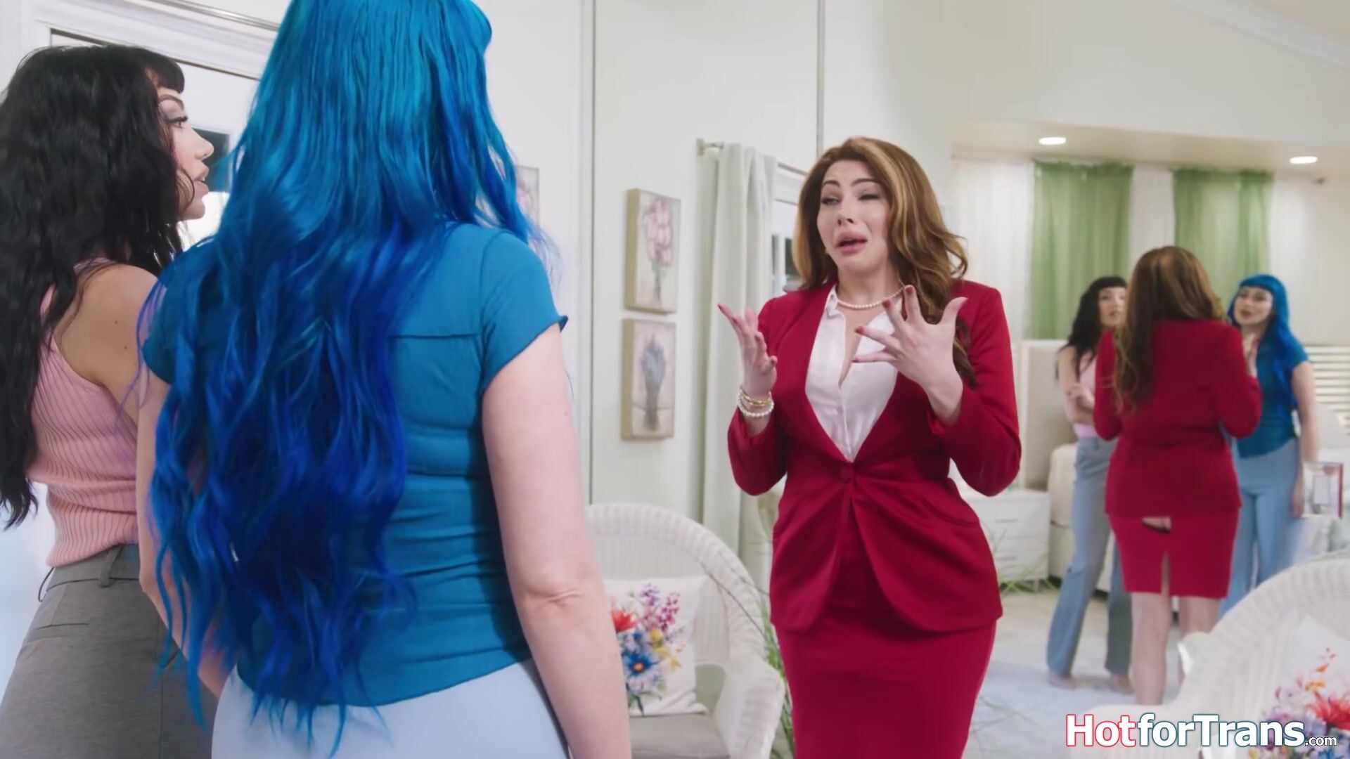 Busty couple Jewelz Blu and Little Puck take the house and want shemale Ariel Demures big trans cock to celebrate.The big tits tgirl is sucked off and facesits to get her ass rimmed by the milf whos pussy licked.The latin tranny anal barebacks them