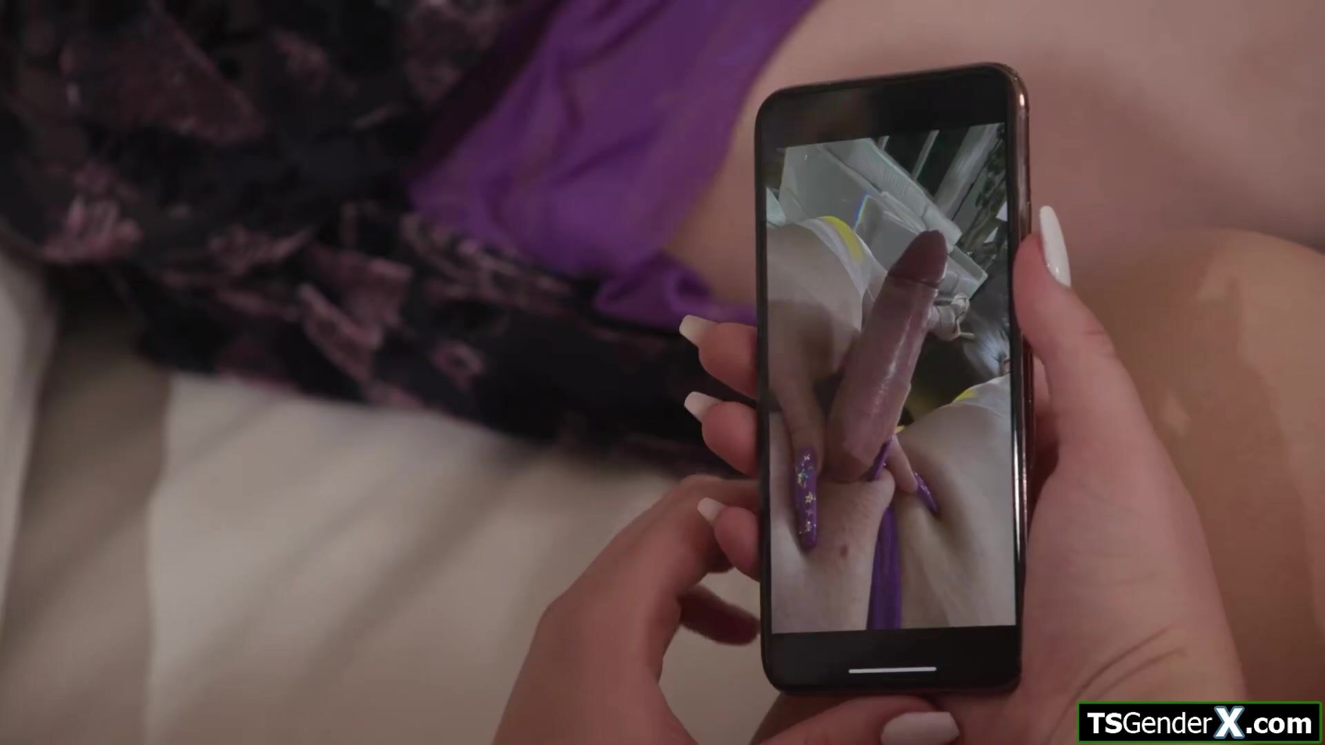 Trans Angelina Please caught her shemale stepsister Gracie Jane sending a dick pic and wants to see it.The busty tgirls decide to masturbate together which of course leads to them deepthroating each others cocks.The big tits trannys anal bareback