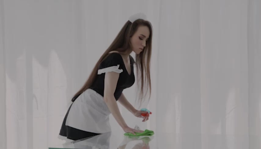 Maid loves black cock while cleaning