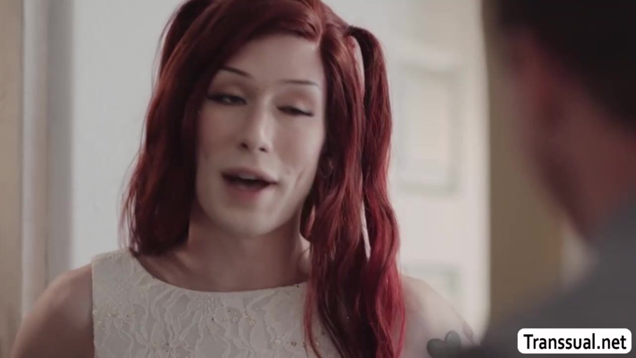 Slutty shemale caught by her stepdad wearing the clothes of her mom.Instead of getting mad,he lets his TS stepdaughter throat his big cock passionately and in return,he licks her ass first before he barebacks it so deep and hard.