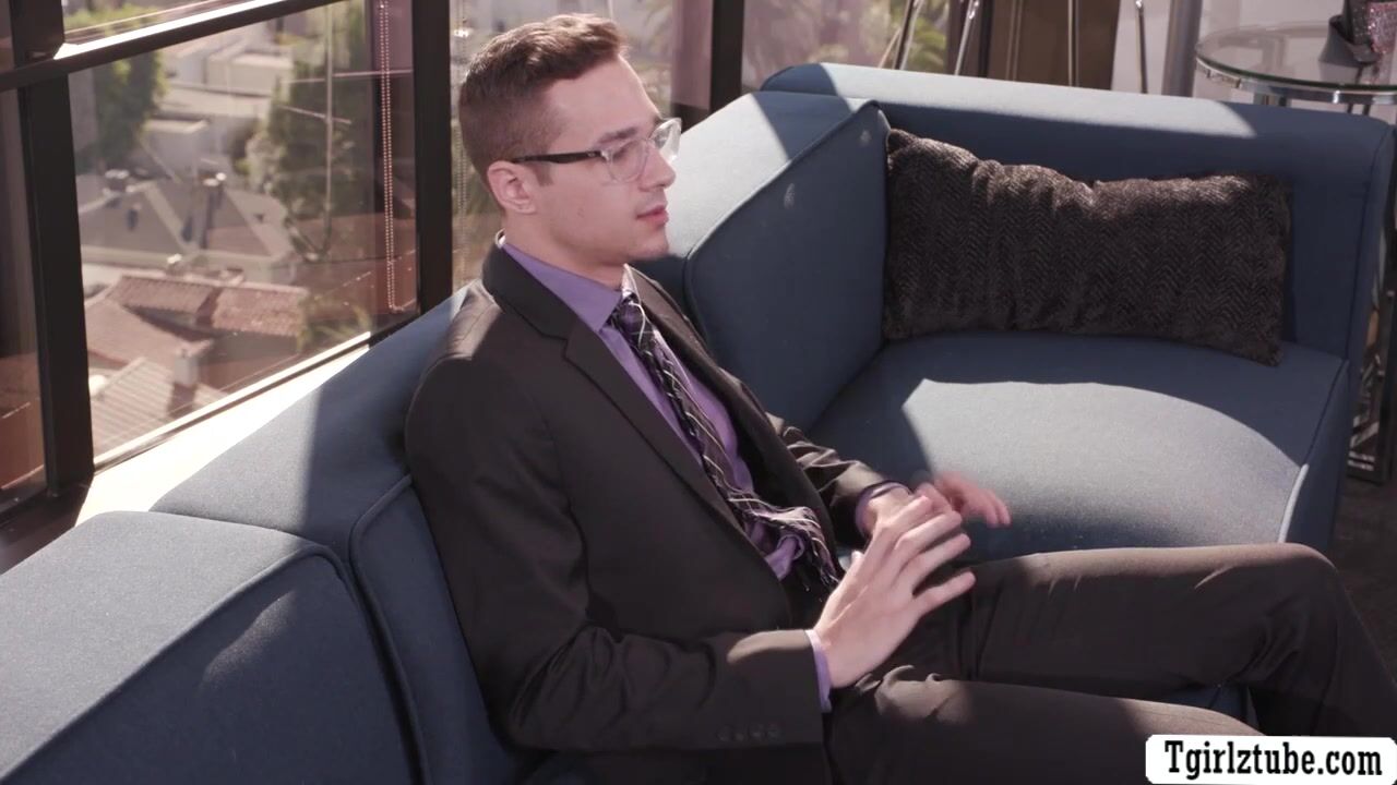 Shemale boss talks to her handsome client on the couch and she then throats his big cock passionately.In return,the handsome dude licks the ass of trans woman boss to makes it wet before he bareback fucks it so deep and hard.