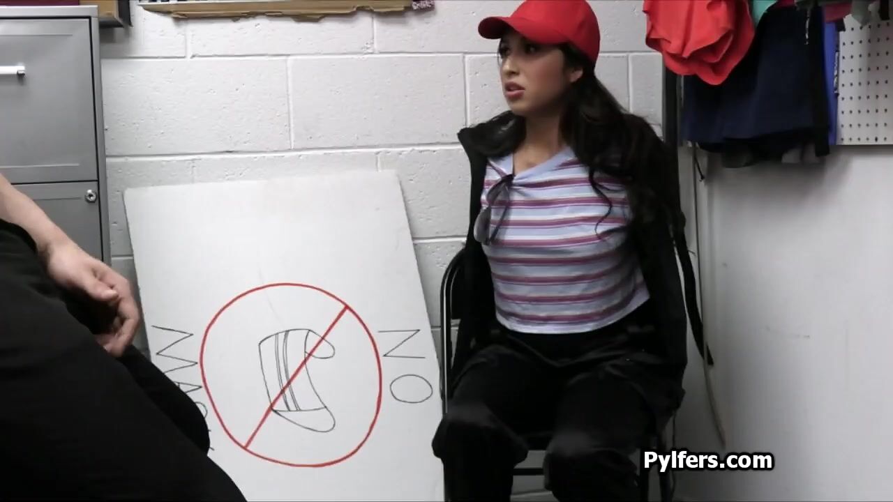Penelope was practicing her freedom of speech at the wrong place. She got escorted into the backroom for an interview what ended in a hot fuck!