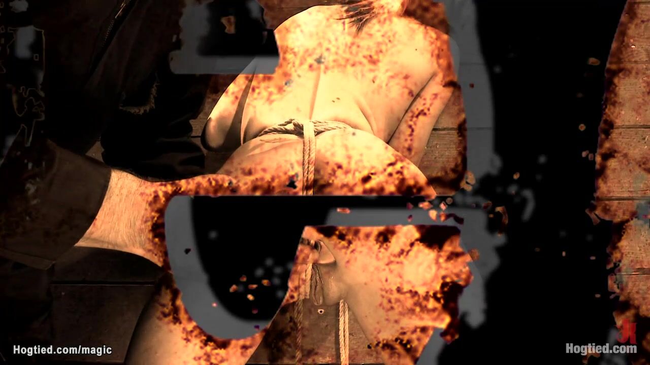 Slim blonde slave Rene Phoenix is suspended in upside down position with crotch rope applied gets nipples clamped and pussy vibed by master Matt Williams on hogtied