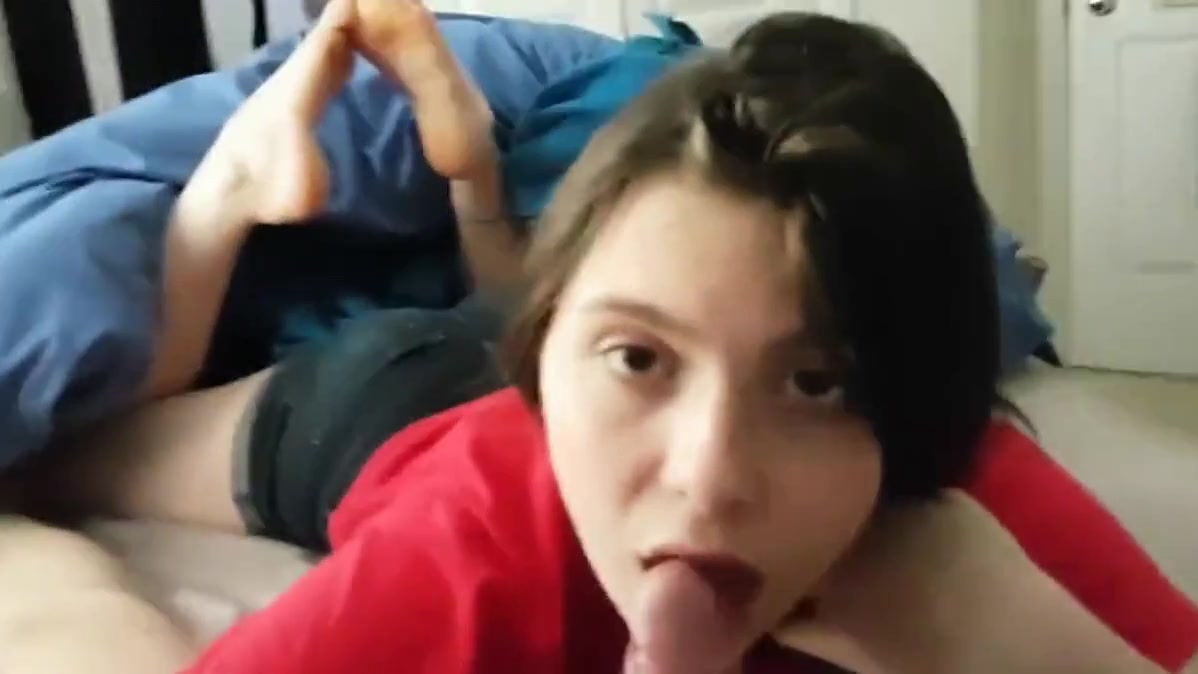 Cute girl sucks off her bf's uncut dick. Swallows the cum but doesn't like it much.